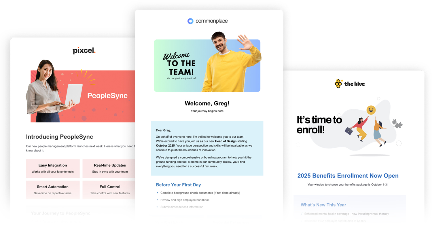Simply drag and drop your existing content into pre-designed templates or customize your own and easily send to your pre-defined groups.